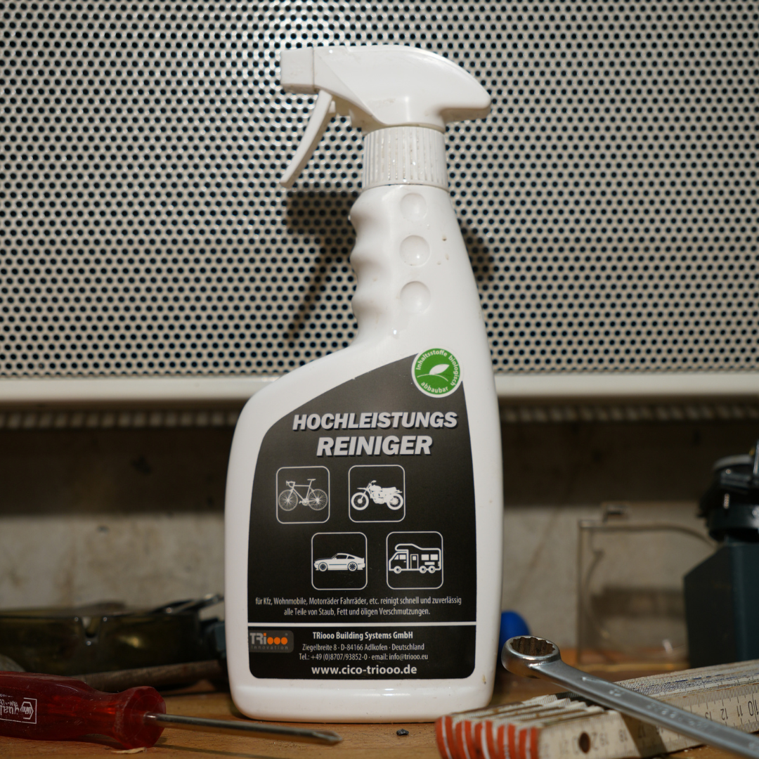 Der TRiooo Hochleistungs-Reiniger entfernt zuverlässig staubige, fettige und ölige Verschmutzungen von Fahrzeugteilen aus Kunststoff, Metall und Holz. Die Formel ist biologisch abbaubar und dadurch ideal für den regelmäßigen Einsatz – auch bei größeren Flächen und hartnäckigen Rückständen.